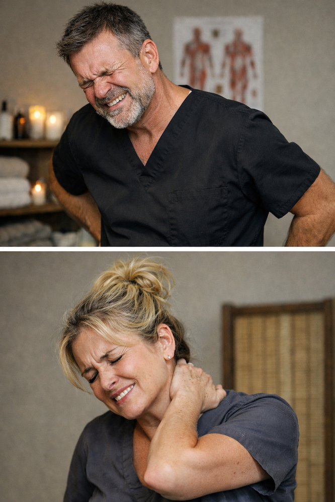 40%+ of massage therapists report chronic work-related pain.